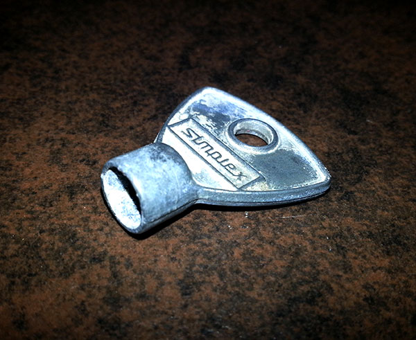 - einen Vierkantschlüssel (oder Schlitz-Schraubendreher)
